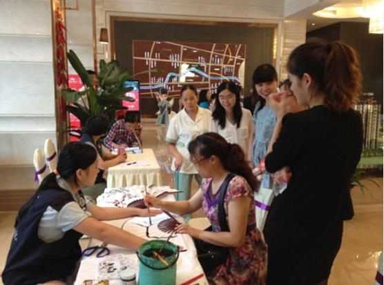 9月6日“畫紙扇”活動(dòng)也吸引了很多氣質(zhì)美女現(xiàn)場臨摹作畫,畫梅花、畫竹子熊貓,畫你所想。沒有畫畫經(jīng)驗(yàn),擔(dān)心畫不好?完全不用擔(dān)心,有作品可以現(xiàn)場臨摹,還有專業(yè)人員現(xiàn)場指導(dǎo),與“猜燈謎”相比,“畫紙扇”古典安靜的氣息吸引了很多美女作畫,能夠親自參與畫畫與并留扇作紀(jì)念,真是太完美了。